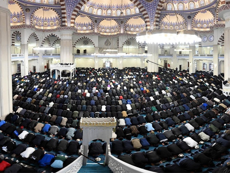 Он начинается рано утром. Верующие совершают омовение, надевают чистую и красивую одежду и отправляются на праздничную молитву — Айт намаз. Перед ним принято давать милостыню — садака или фитр-садака, чтобы помочь нуждающимся и разделить радость праздника со всеми.