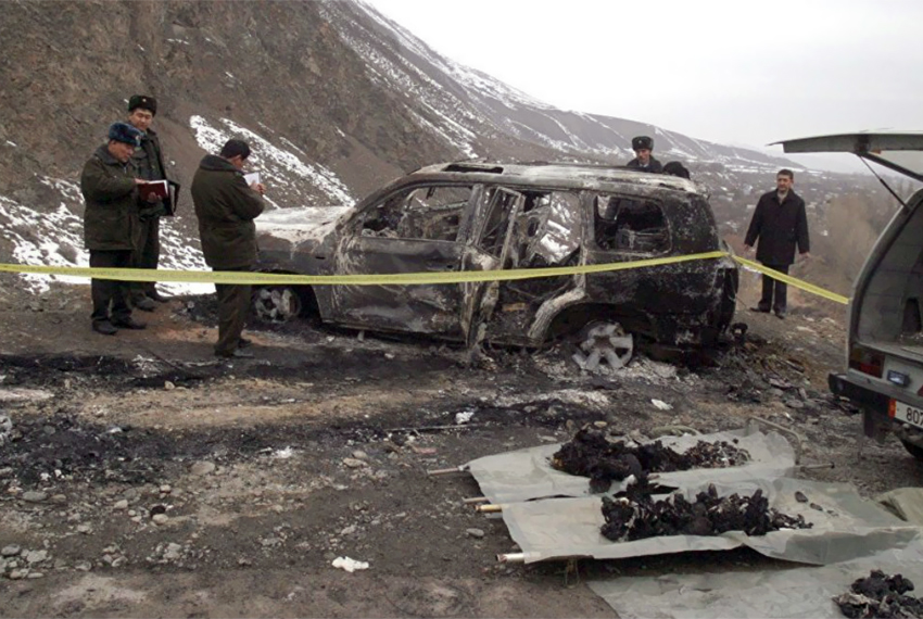 Утром на горной дороге недалеко от Бишкека обнаружили сгоревший внедорожник Lexus, в котором находились тела Медета Садыркулова, Сергея Слепченко и Кубата Сулайманова.