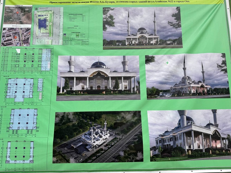 В Оше сегодня началось строительство нового здания центральной мечети «Имам аль-Бухари — Алай». Как сообщили в муфтияте, проект будущего комплекса официально представлен горожанам накануне во время праздничного Айт-намаза.
