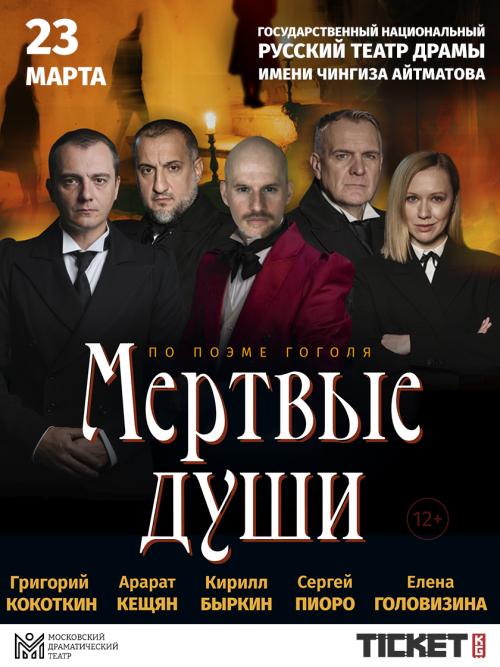 Московский драматический театр предлагает взглянуть по-новому на бессмертное творение. Зрителей ждет свежая и злободневная интерпретация поэмы Николая Гоголя. В ролях: Григорий Кокоткин, Арарат Кещян, Кирилл Быркин, Сергей Пиоро, Елена Головизина.