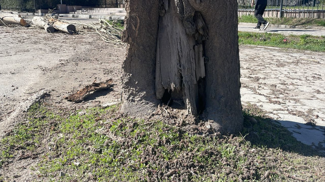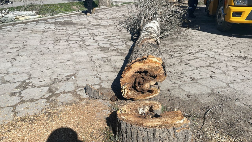 На улице Ауэзова ведется санитарная обрезка и снос сухостойных, аварийных деревьев, представляющих потенциальную опасность для жителей и инфраструктуры. Об этом сообщает пресс-служба мэрии Бишкека.