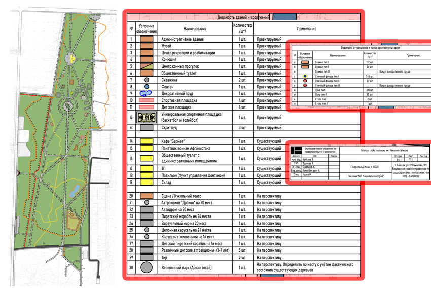 По словам Рустама Токталиева, заместителя директора подрядной компании, которая наводит порядок, параллельно появятся небольшие новые объекты, необходимые для парка. Помимо конюшни, в планах — центр рекреации для занятий йогой и шахматами (около 600 квадратных метров), музей рядом с памятником воинам-афганцам и административное здание для сотрудников парка.