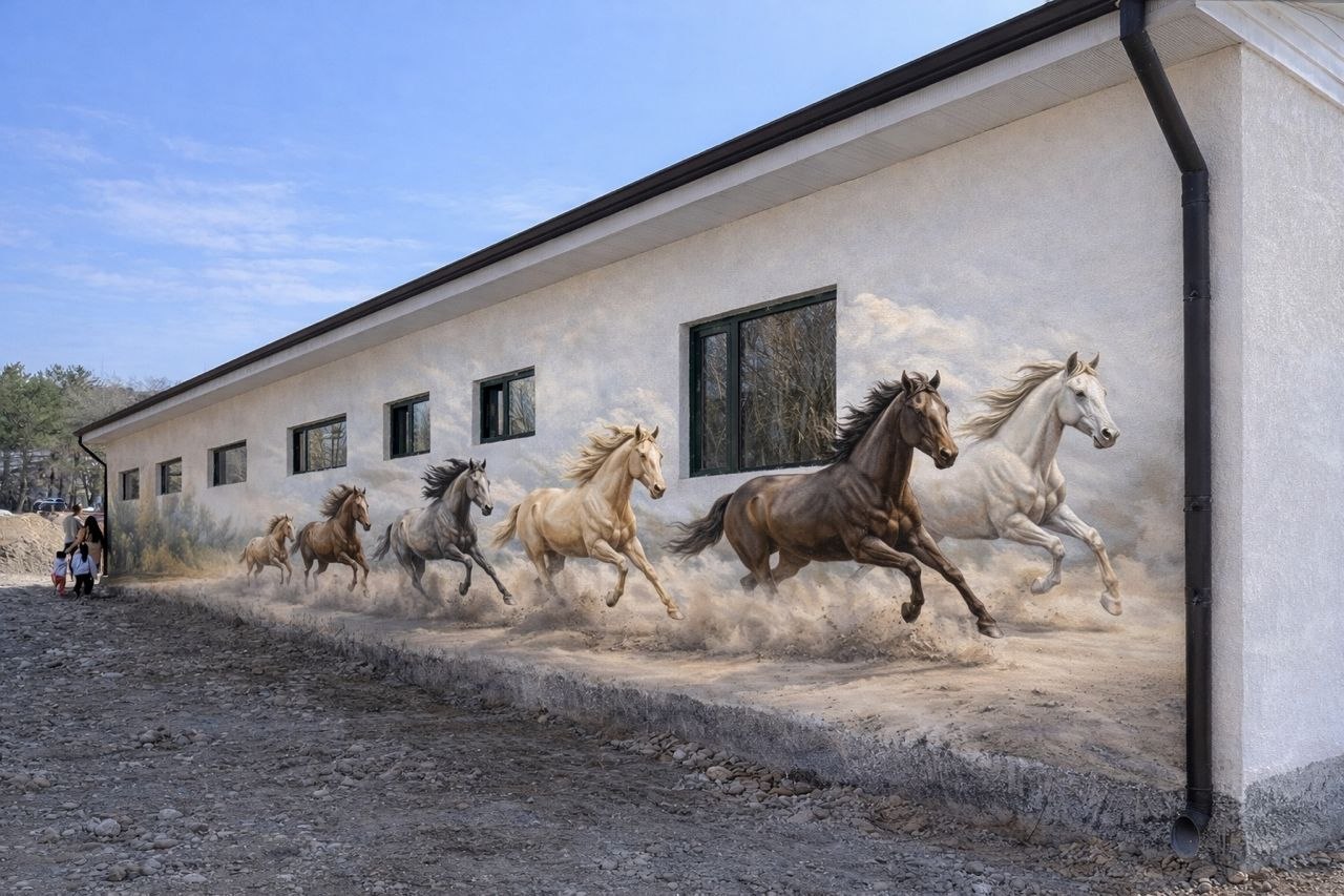 В глубине парка достраивают конюшни — в ближайшее время сюда переедут лошади и пони. Это будет зона иппотерапии для людей с инвалидностью — одно из ключевых социальных направлений проекта.