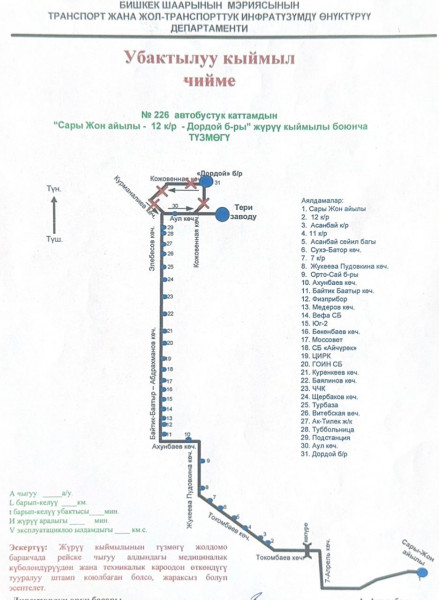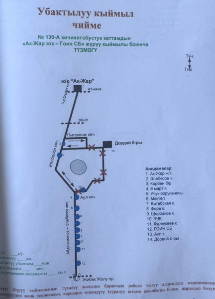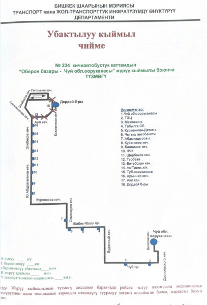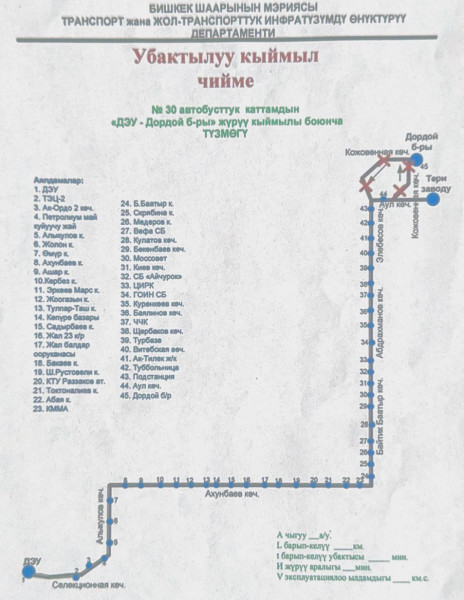 По ее данным, в связи с работами временно изменится схема движения семи маршрутов: № 30, 226, 203 — автобусы муниципального предприятия «Бишкекский городской транспорт», а также микроавтобусов № 143, 161, 234 и 130.