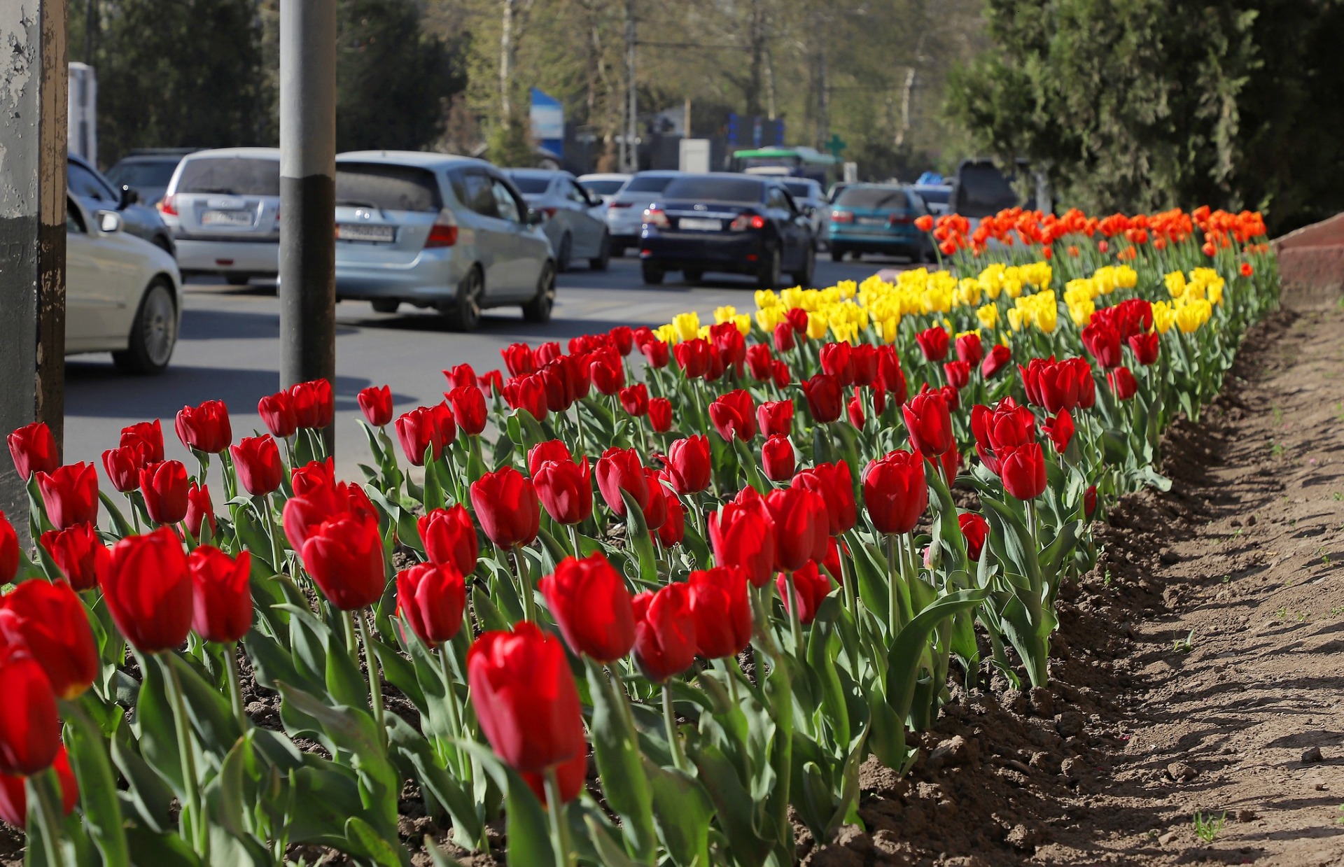 В Оше начался сезон цветения тюльпанов, которые уже украсили шесть районов города. На сегодня распустилось около 20 тысяч первоцветов.