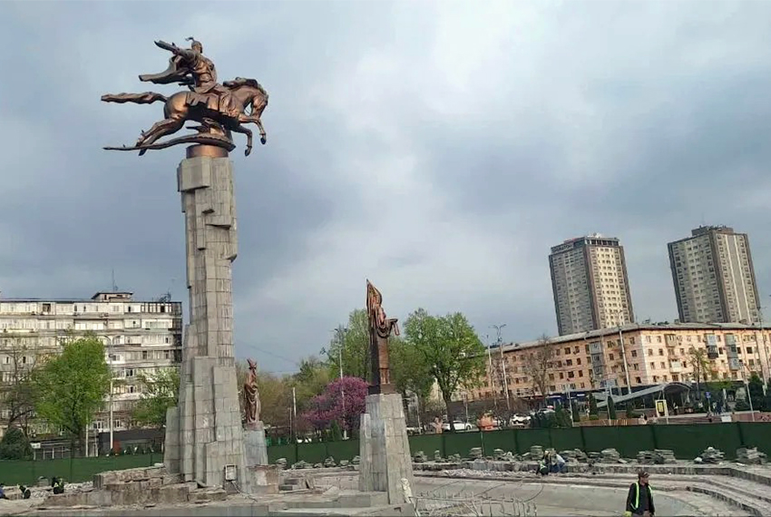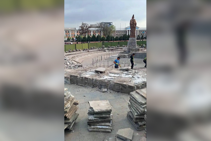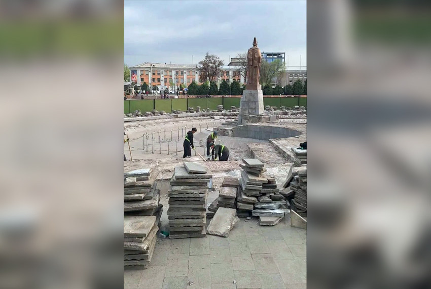 В Бишкеке начался демонтаж фонтанов возле здания филармонии. Видео и сообщения об этом распространяются в социальных сетях.