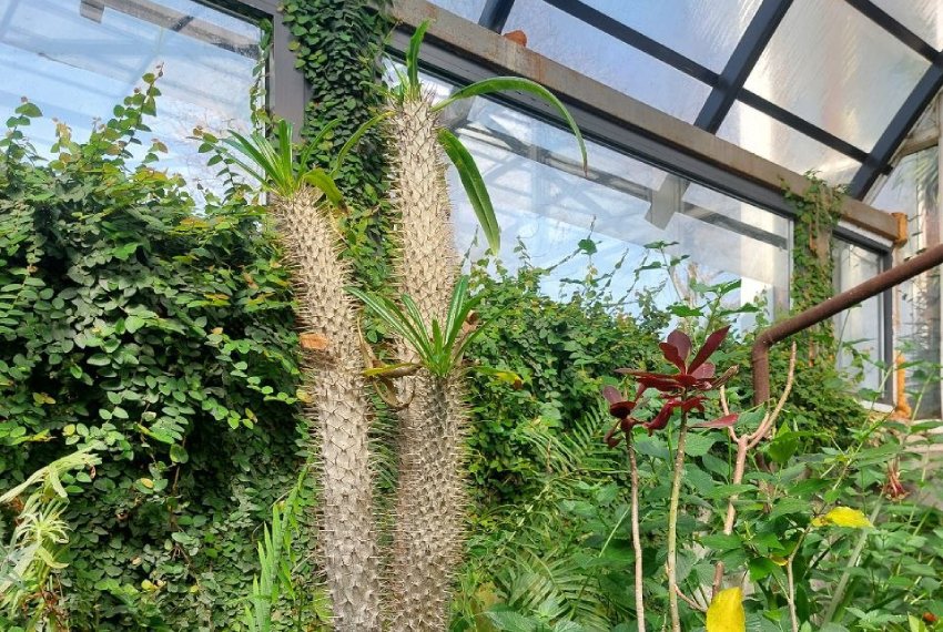 В оранжерее отлично растут разные виды и сорта аспарагуса, кактусов и суккулентов, фикусов, папоротников, гибискус, магнолия, мушмула, монстера, фейхоа и другие экзотические растения.Растения цветут круглый год, что-то отцветает, что-то только начинает. В оранжерею часто, особенно зимой, на экскурсии приходят студенты, школьники и ребята из детских садов. Особенно интересно смотреть на растения дошколятам. Их восхищению нет предела.