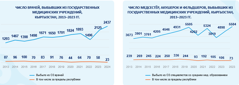 По данным экспертов, в 2022 году из организаций здравоохранения выбыло около 1,5 тысячи врачей (в том числе 70 за пределы республики). В 2023-м уволилось с работы уже 2,1 тысячи докторов (в том числе 58 за пределы республики). В 2024-м число уволившихся врачей превысило 2,4 тысячи.