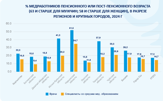 В Баткенской, Джалал-Абадской и Ошской областях показатель ниже среднего по стране по числу медиков-пенсионеров по всем профессиональным категориям.