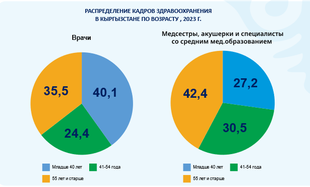 Так, 35,5 процента врачей по республике в возрасте старше 55 лет. Это выше среднего показателя Европейского региона ВОЗ (31 процент). При этом 40 процентов врачей младше 40 лет, 24,4 процента — в возрасте 41-54 года.