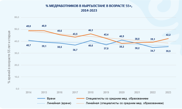 Что касается специалистов со средним медобразованием, то 42 процента старше 55 лет.