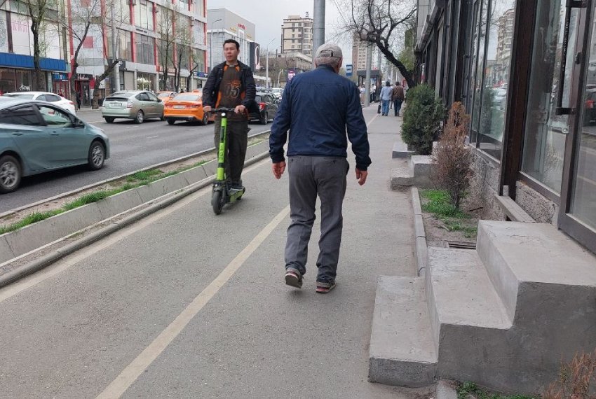 Изначально тротуары не рассчитывали на нынешнее количество жителей. Их спроектировали в советское время, когда население столицы было гораздо меньше. В итоге тесные пространства еще и поделили между пешеходами и любителями самокатов, велосипедов и мопедов. Это создает постоянные конфликты. Как говорят бишкекчане, «у пешеходов просто украли законную часть и без того небольшого тротуара».