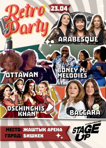 В программе вечера культовые артисты и проекты, ставшие символами целой эпохи: Ottawan, Arabesque, Boney M. Reloaded, Dschinghis Khan, BACCARA. Зрителей ждут узнаваемые хиты, мощная энергетика сцены, живое исполнение и атмосфера настоящего ретро-праздника.