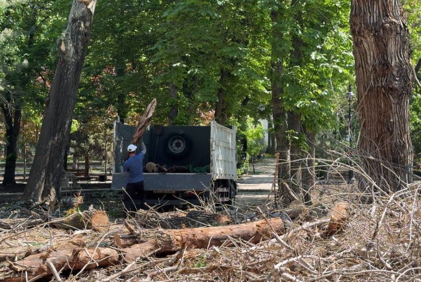 В столичном Дубовом парке полным ходом вырубают деревья, что вызывает серьезную обеспокоенность горожан. На территории парка пилят сосны, акации, березы и другие породы, а срезанные стволы оперативно вывозят. Журналисты 24.kg побывали в парке и увидели, как производятся санитарные мероприятия в самом сердце Бишкека.