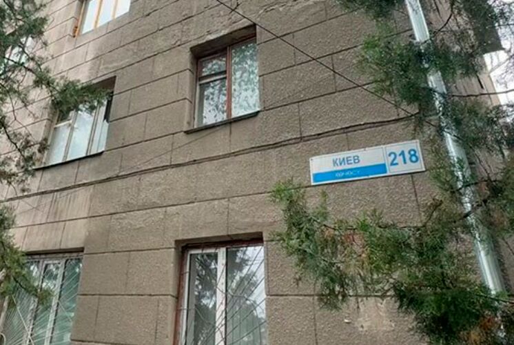 По улице Киевской между Калыка Акиева и Тимирязева стоит неприметный пятиэтажный дом. В окружении деревьев он не сразу бросается в глаза, хотя расположен на первой линии — рядом с остановкой общественного транспорта.
