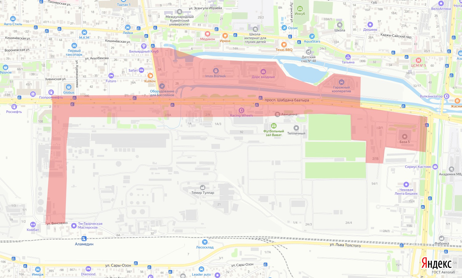 Район отключения ограничен проспектом Шабдана Баатыра — улицами Хивинской (от улицы Лермонтова до улицы Валиханова) — Достоевского.