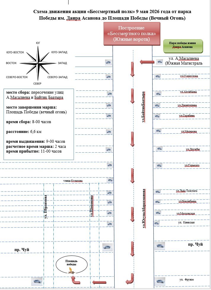 Сбор участников начнется в 8.00 у Южных ворот. В 9.00 колонна двинется по улице Байтика Баатыра, затем проследует по проспекту Чуй до Шопокова.