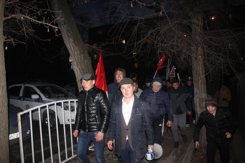 Сторонники депутата Жогорку Кенеша, лидера партии «Ата Мекен» Омурбека Текебаева, арестованного поздно вчером на два месяца по обвинению в коррупции и мошенничестве, сегодня митинговали у зданий Первомайского районного и бывшего военного судов.