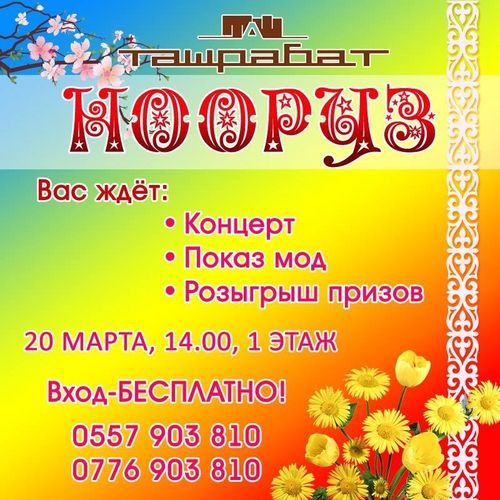 В программе концерт различных коллективов города, звезд кыргызской эстрады, театрализованное выступление, ярмарка.