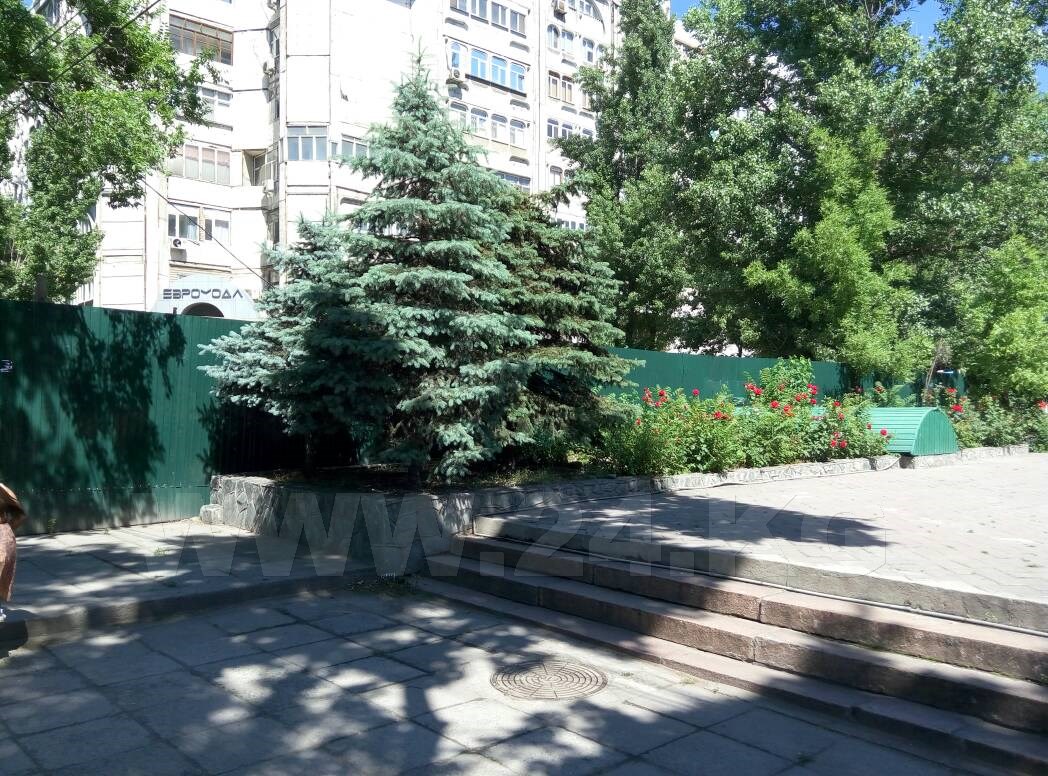 Ранее на этом участке был цветочный павильон. Год назад объект снесли, территорию огородили и начали готовить под строительство. Участок находится в частной собственности у ОсОО «Эль Аман» с 2002 года. Бишкекглавархитектура в феврале 2015 года выдала заключение на проведение работ при условии соблюдения требований и строительных норм.