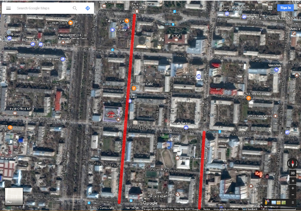 Улица Уметалиева по-прежнему перекрыта от Московской до Токтогула. Параллельная ей улица Калыка Акиева до проспекта Чуй для автомобилистов тоже недоступна.