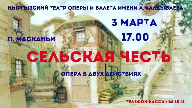 — В Государственном национальном русском театре драмы имени Ч.Айтматова покажут комедию «Безумный день, или Женитьба...», в Кыргызском национальном академическом театре оперы и балета имени А.Малдыбаева — оперу «Сельская честь».