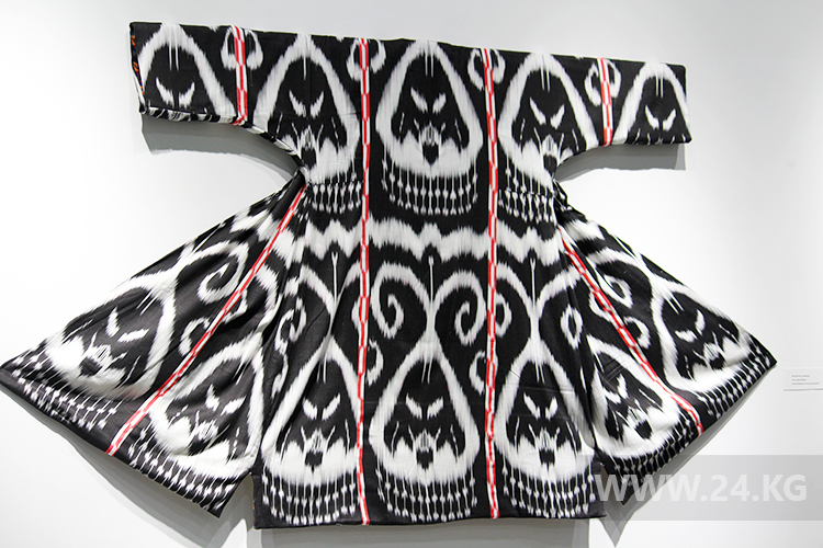Представлены традиционные узбекские абровые ткани, изготовленные в городе Маргилане по традиционным технологиям. В традиционные рисунки включены символы современной массовой культуры, логотипы, знаки.