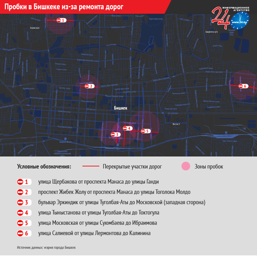 «Закрытые участки очень изношены. Горожанам придется потерпеть, это вынужденная мера. Улицу Термечикова (от Толстого до Гагарина) не ремонтировали со времен Советского Союза. Ею редко пользовались водители, так как по ней не проедешь. В плачевном состоянии Айни — от Псковской до Ч.Айтматова. Откровенно говоря, водители их избегали. Или бульвар Эркиндик. Это главный бульвар в республике, но в каком он состоянии! Он имеет высокий статус, там расположены крупные организации, в том числе и международные. Дорога очень загружена. Другого выхода, кроме как закрыть улицу на ремонт, у нас нет», — пояснил Нурлан Эшенбаев.