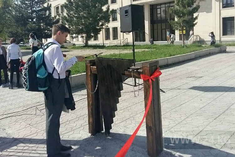 На аллее Молодежи в Бишкеке появились музыкальные инструменты из вторсырья. Глюкофон, трубофон, ксилофон и набор ковбеллов установили благодаря проекту «Школа молодых лидеров».