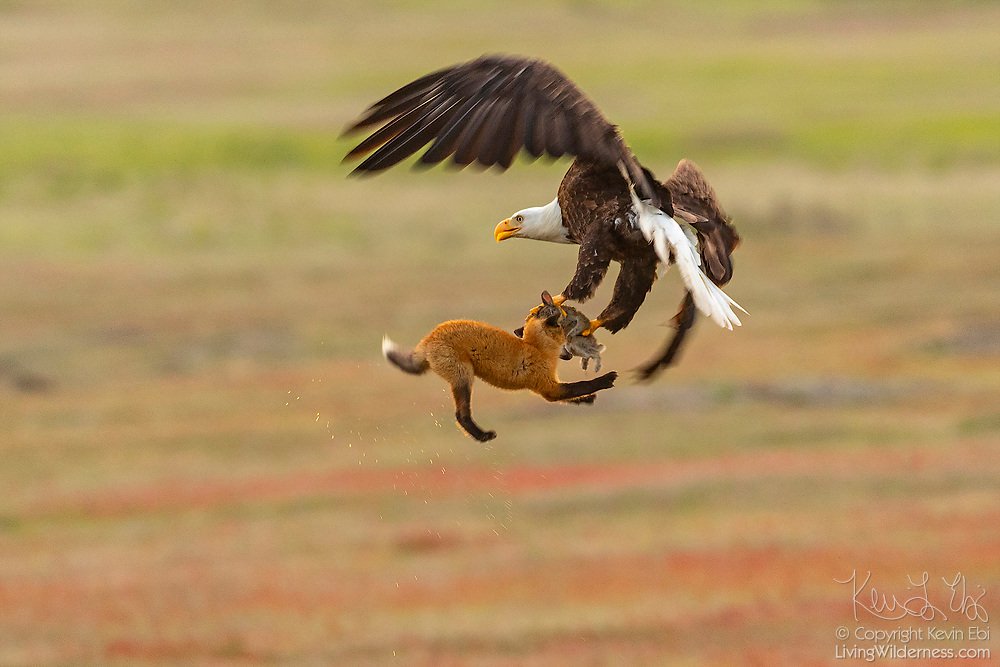 Фотограф дикой природы Кевин Эби стал свидетелем безумного зрелища: белоголовый орел и рыжая лиса боролись за кролика в воздухе. Об этом он написал в своем блоге.