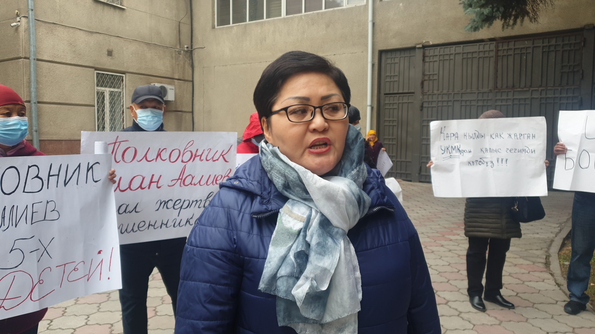 «У Гульзат Мамытбек ущерб $110 тысяч, а у Асыл Талиповой около $2 миллионов в общей сложности. Но почему-то ее не задерживают. Восемь пострадавших от Асыл Талиповой сейчас сидят в СИЗО ГКНБ. От задержанных по этому делу требуют дать показания на Уланбека Аалиева. Следственной службой МВД руководит некий Азамат Джумабаев, он является покровителем Асыл Талиповой. Мы хотим, чтобы президент взял это дело под контроль», — сказала Гулзат Аалиева.