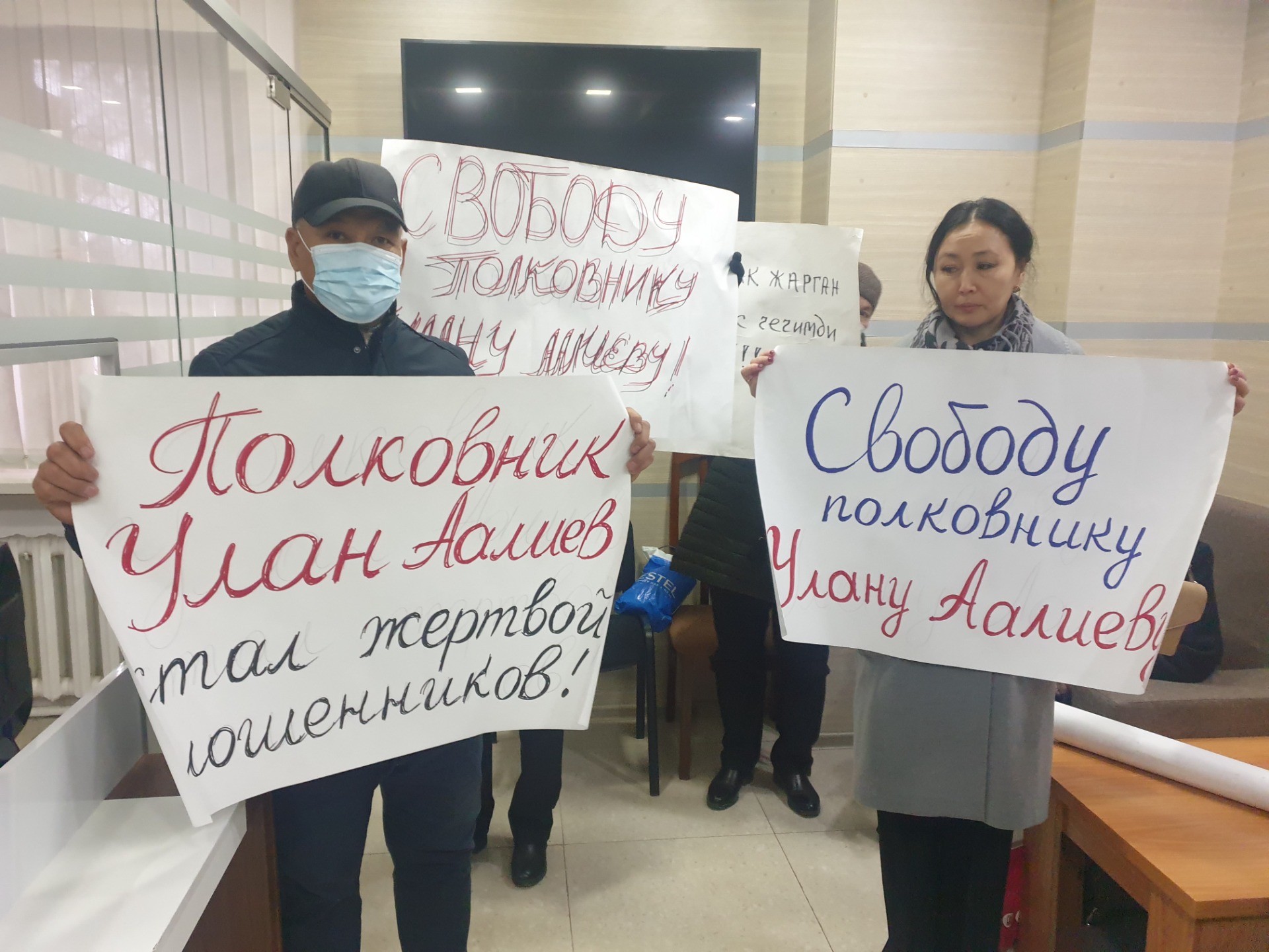 По словам сестры задержанного начальника УВД Октябрьского района Уланбека Аалиева, митингующие требуют изменить меру пресечения в отношении полковника милиции. Вторым требованием протестующих является задержание Асыл Талиповой.
