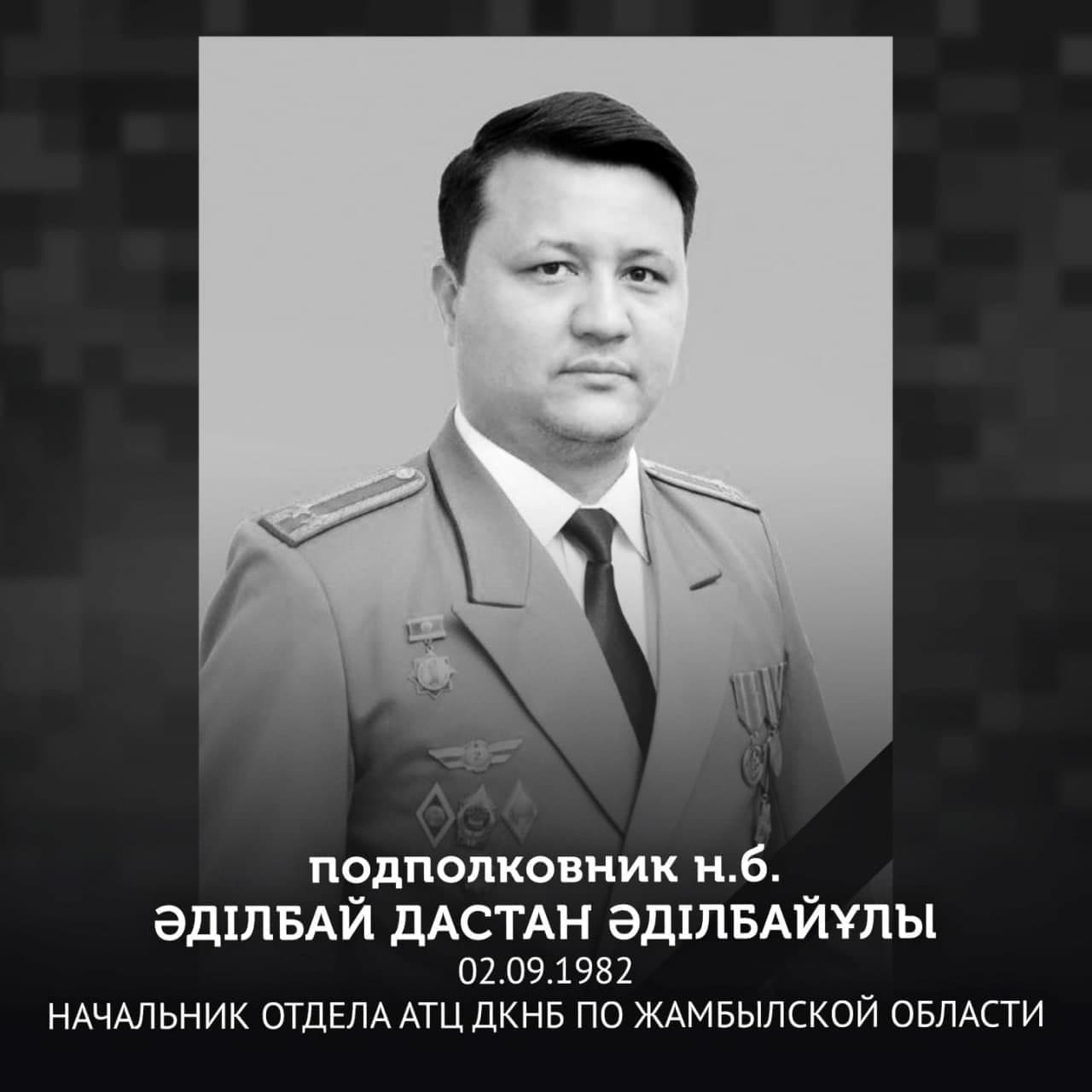 Самому младшему из погибших — Даулету Жупарбекову было 19 лет. Он учился в Пограничной академии КНБ. Среди погибших Жайык Адылкан. Он также учился в этой академии. Ему было 22 года. Третий погибший — Адиль Нуркенов. Младшему оперуполномоченному было 29 лет. Начальнику кафедры Пограничной академии КНБ полковнику Андрею Кабдинову было 47 лет. Подполковник Дастан Эдильбай работал начальником отдела антитеррористического центра ДКНБ по Джамбульской области.