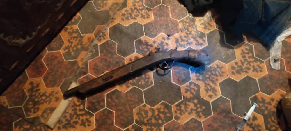 По ее данным, правоохранители получили информацию о том, что некий мужчина изготавливает и хранит у себя наркотические средства. На основании постановления суда был произведен обыск по месту проживания гражданина. У него изъяли стеклянную банку, внутри которой находился фрагмент пластмассовой бутылки с нагаром (предположительно бульбулятор), 15 патронов неустановленного калибра, вещество темно-коричневого цвета со специфическом запахом конопли и гладкоствольное ржавое ружье.