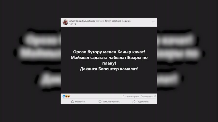 «Видео должно было затронуть национальные патриотические чувства и спровоцировать представителей неорганизованной молодежи страны аналогично событиям, произошедшим в мае 2024-го. Далее специально подготовленные боевые группы, снаряженные огнестрельным оружием, в разных точках Бишкека организуют драки и погромы в местах работы и проживания иностранцев», — отметили в ГКНБ.