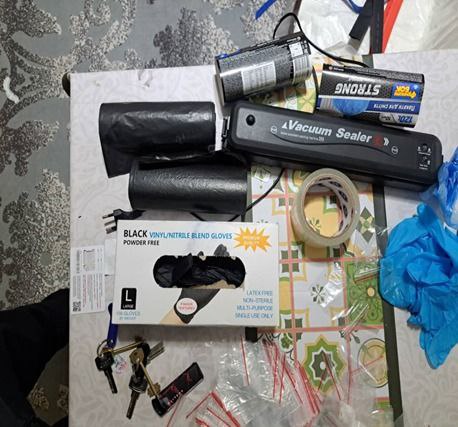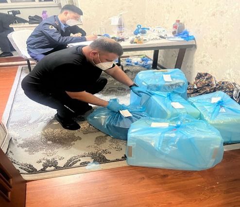 Сообщается, что по месту жительства задержанного были обнаружены химические средства и оборудование для производства синтетических наркотиков, жидкие прекурсоры (общим весом 884 грамма), весы, контейнеры, респираторы а также были изъяты синтетические наркотики под названием «Альфа-ПВП» общим весом около 100 граммов.
