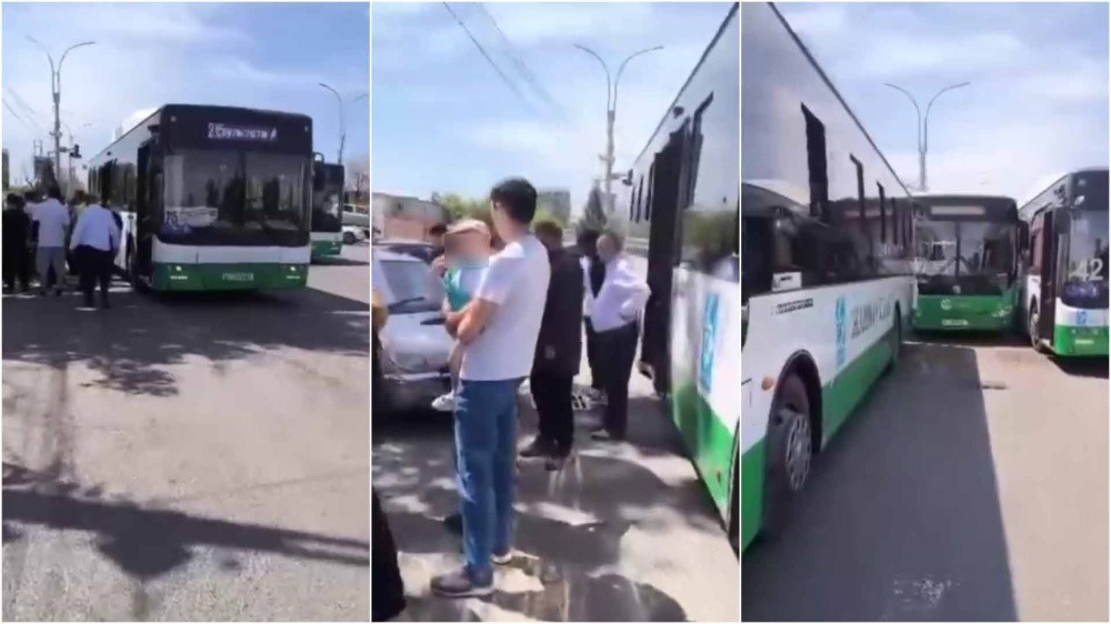 Накануне, 5 мая, в Бишкеке на пересечении проспекта Дэн Сяопина и улицы Лумумбы произошло массовое дорожно-транспортное происшествие с участием трех пассажирских автобусов и одного легкового автомобиля.