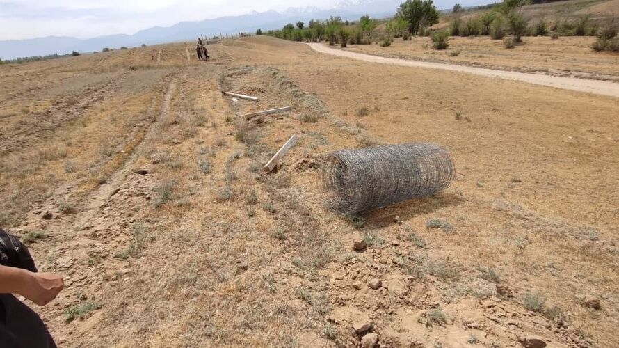 Служба по земельному и водному надзору выявила, что на южной стороне села Аманбаев Айтматовского района Таласской области, на участке с контуром № 1242 самовольно, без каких-либо разрешительных документов, на лесной территории площадью 2,5 гектара установлены бетонные столбы и ограждение из проволочной сетки под кладбище. Об этом сообщает пресс-служба Минсельхоза.