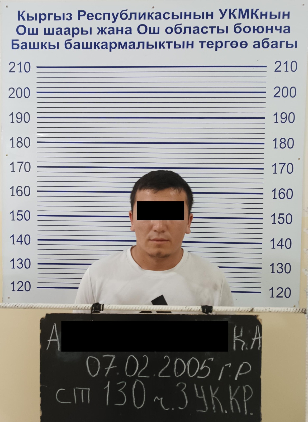 В Узгенском районе парень обратился с заявлением о том, что его жестоко избили криминальные элементы. Медэкспертиза показала, что у заявителя диагностированы телесные повреждения, которые квалифицируются как тяжкие по признаку опасности для жизни. Спецслужбы задержали подозреваемых. Ими оказались трижды судимый 31-летний А.Ж.Т. и 20-летний А.К.А., которые ранее поддерживали связь с ОПГ криминального элемента по прозвищу Коен.
