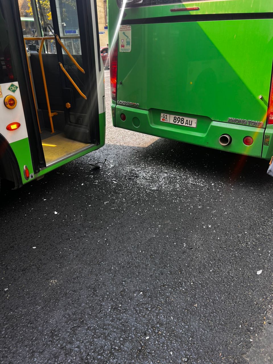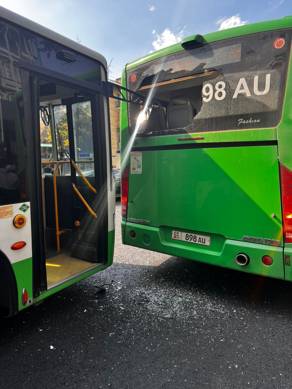 В Бишкеке на перекрестке улиц Абдрахманова и Боконбаева столкнулись два автобуса — № 42 и 243. Об этом 24.kg сообщили очевидцы.
