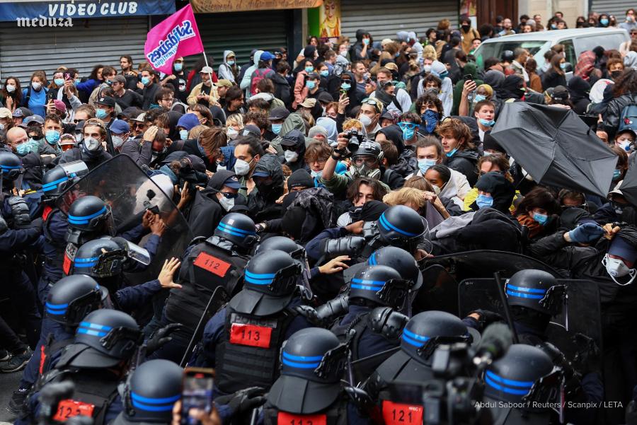 В МВД Франции сообщили, что задержали уже почти 300 человек, 185 из них — в Париже. Ожидается, что в акциях по всей стране примут участие до 100 тысяч человек.