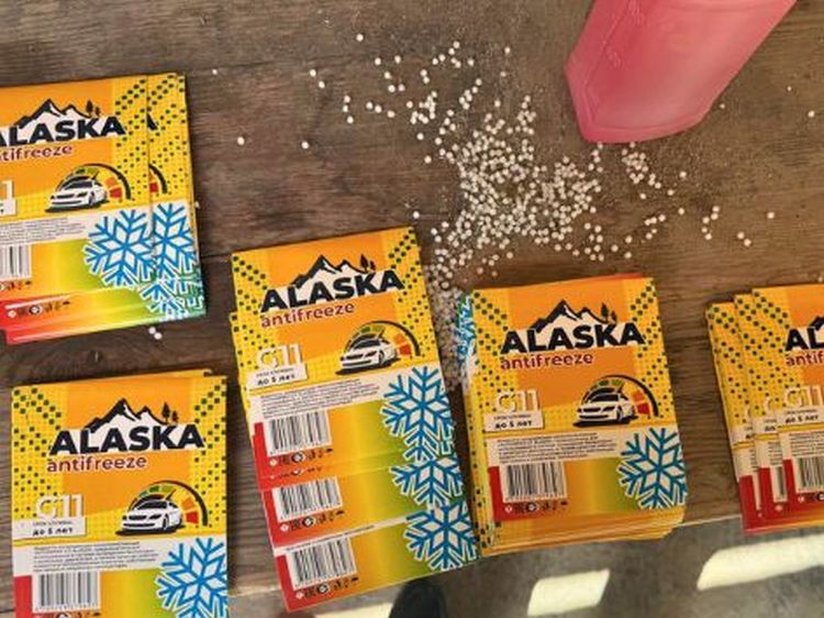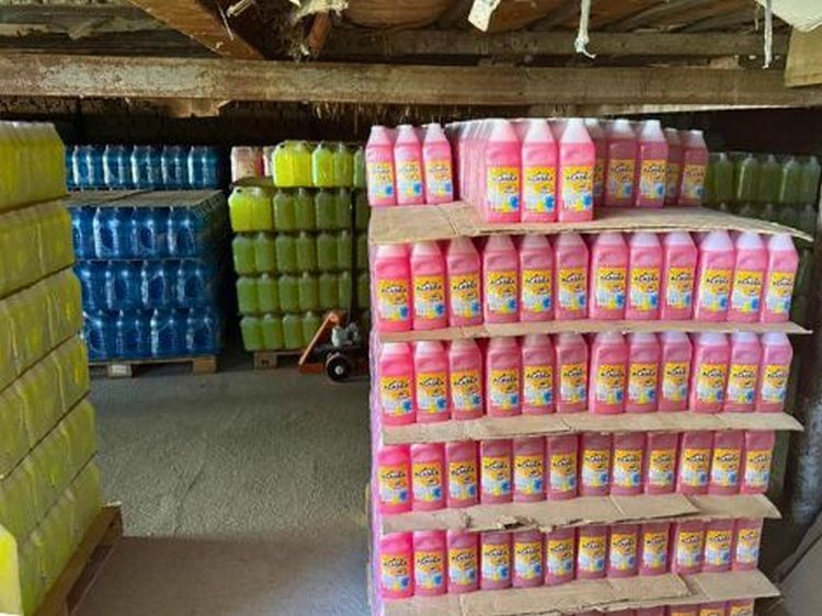 В ходе проверки в помещении обнаружили 45 тонн бесцветной жидкости, предположительно технического спирта, и большое количество этикеток, крышек, тары и готовой продукции: антифриза, стеклоомывающей жидкости и других средств.