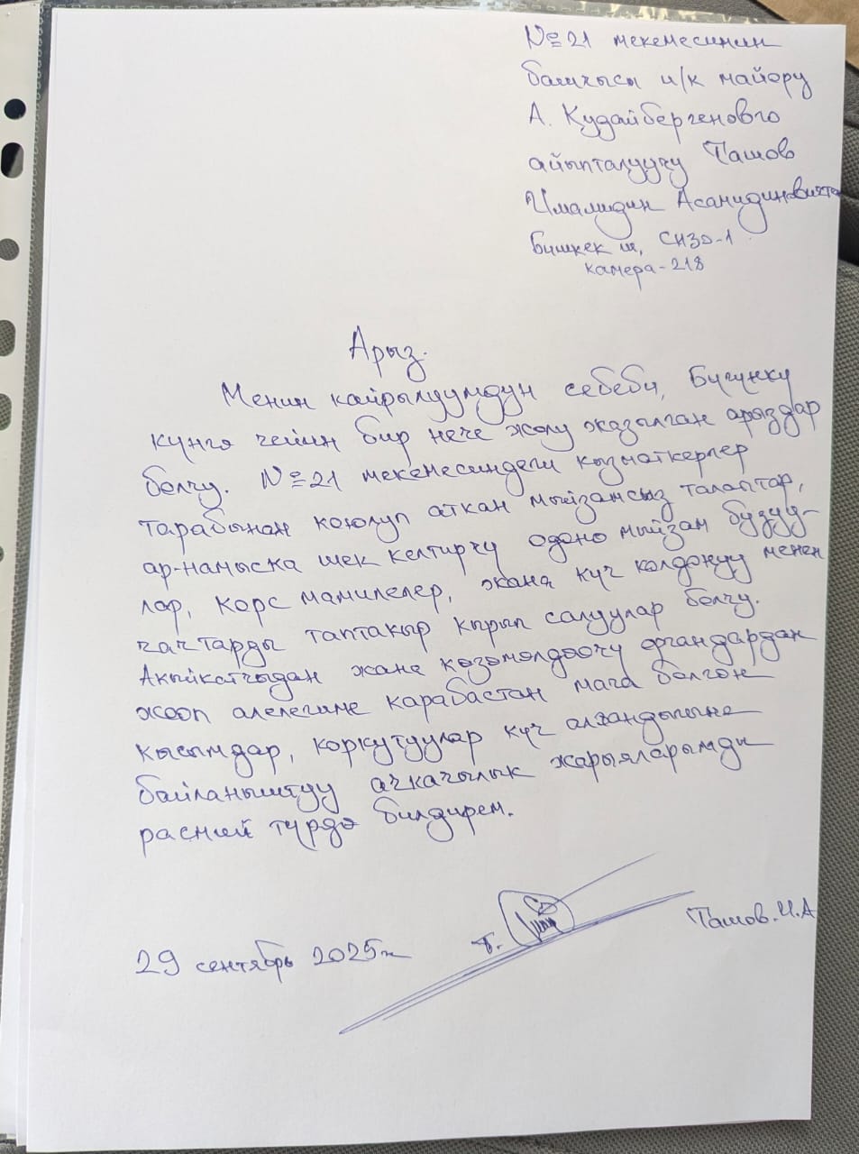 Адвокат подчеркнула, что такие действия нарушают Закон КР «О порядке и условиях содержания под стражей». В частности, статья 22 часть 7 прямо запрещает преследование подозреваемых за подачу жалоб и обращений.