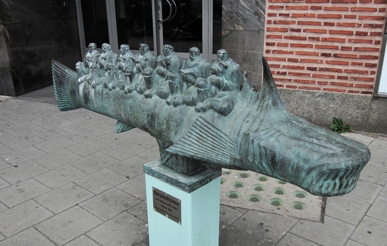 Скульптура была создана в 1940 году. Она изображает семерых человек, сидящих на спине большой рыбы. Фигура символизирует великое переселение шведов в Америку с середины ХIX века по начало 20-х годов XX века.