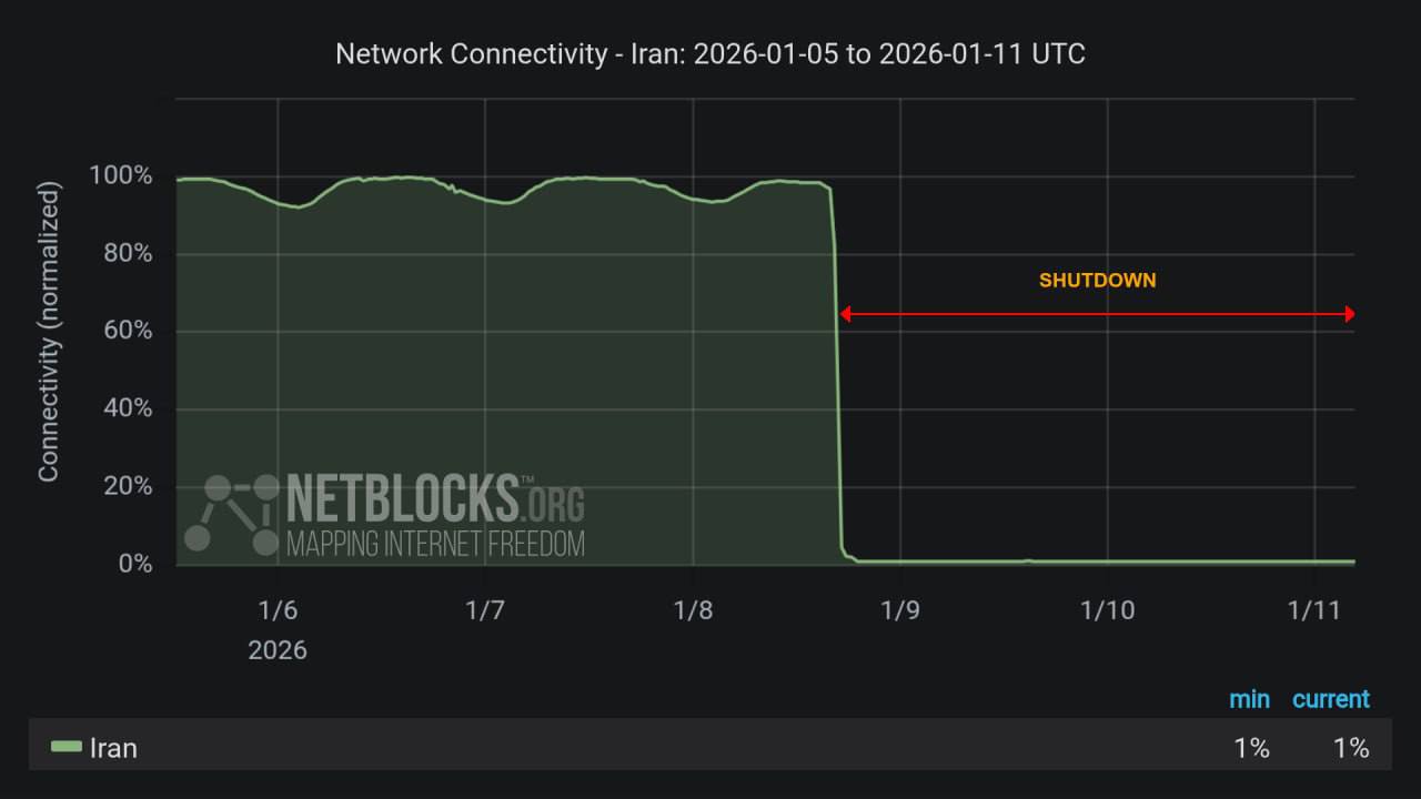 Напомним, в Иране уже более 60 часов нет интернета. Массовые митинги в стране, вызванные экономическим кризисом и девальвацией местной валюты, продолжаются с конца декабря 2025 года.