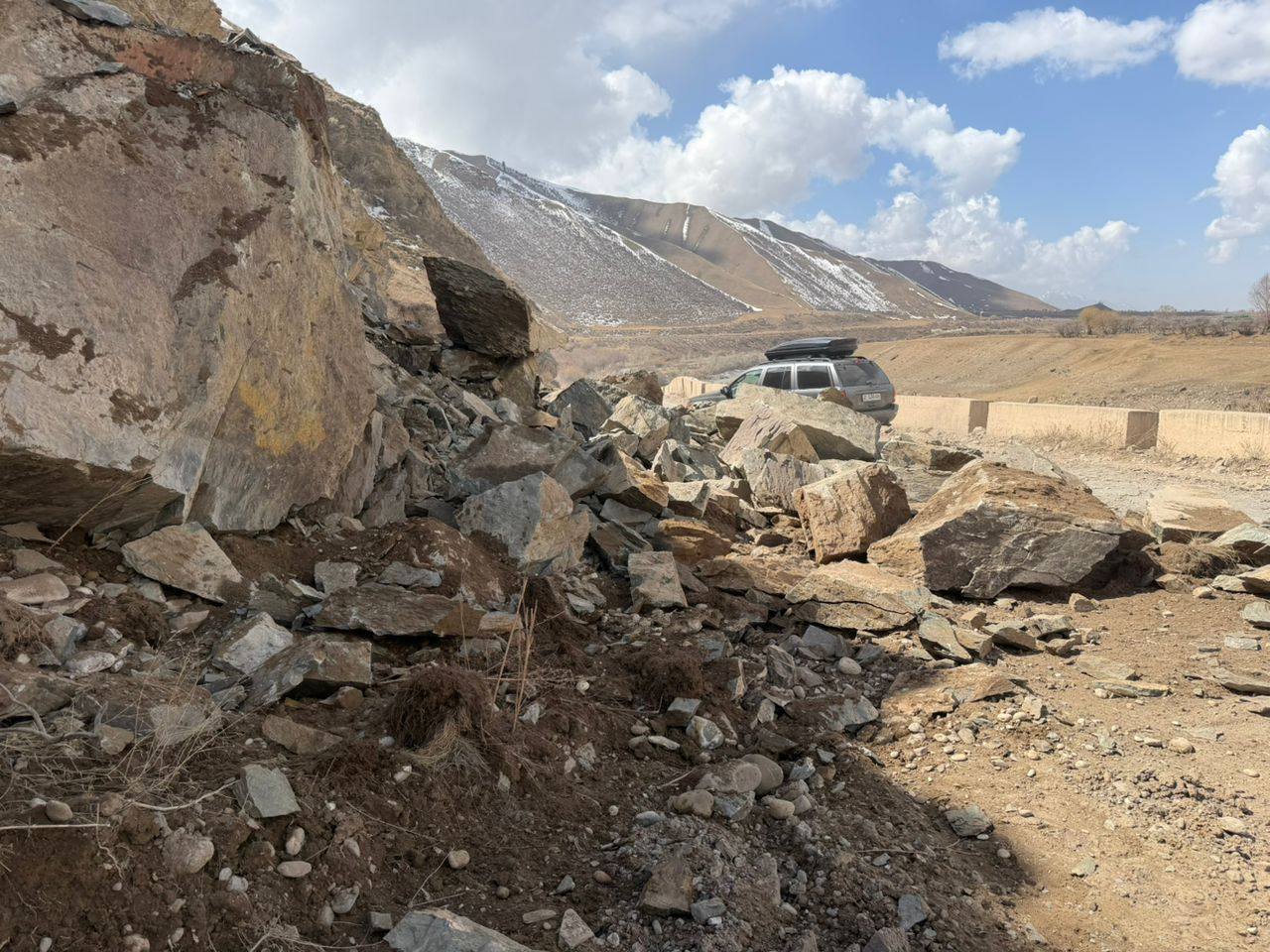 На участке Когонду автодороги Арык – Орук-Там (20-25-й километры) произошел камнепад, в результате которого на проезжую часть сошли крупные камни.