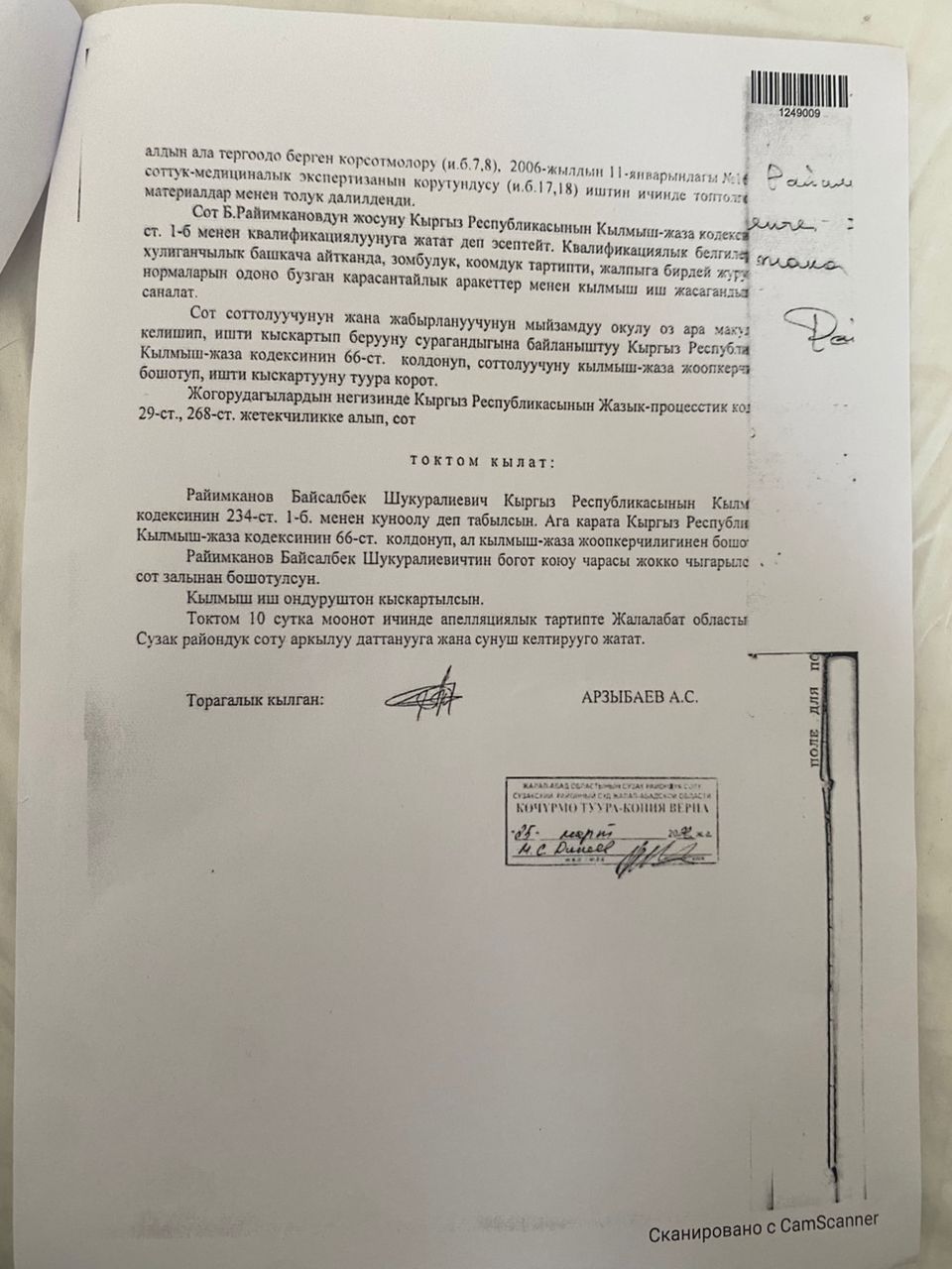 В обращении также говорится, что по заявлению семьи в отношении сотрудника ГКНБ было возбуждено уголовное дело по факту злоупотребления должностными полномочиями. Подозреваемый был задержан, однако Первомайский районный суд избрал ему меру пресечения в виде домашнего ареста.