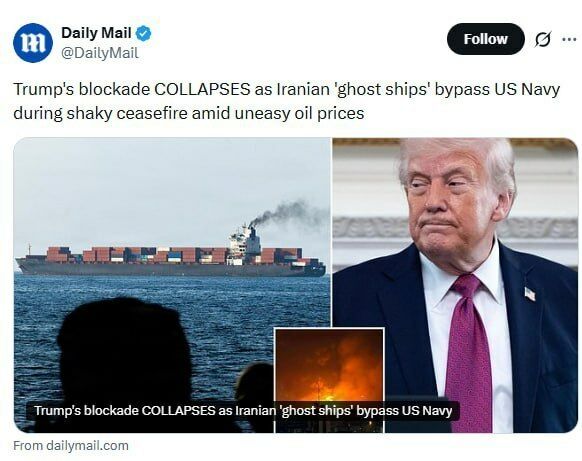 По данным издания, иранские «корабли‑призраки» прошли мимо Военно‑морских сил Штатов на фоне шаткого режима прекращения огня и нестабильной динамики мировых цен на нефть. Термин «корабли‑призраки» используется западными СМИ для обозначения судов, которые обходят санкции Америки.