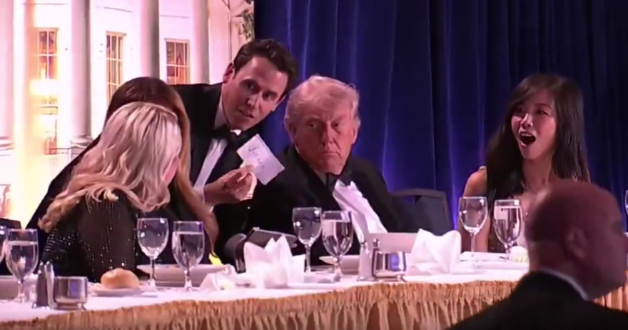 Сейчас здание отеля оцеплено, сообщает AFP. По данным Axios, репортеры и их гости продолжают находиться внутри банкетного зала отеля.