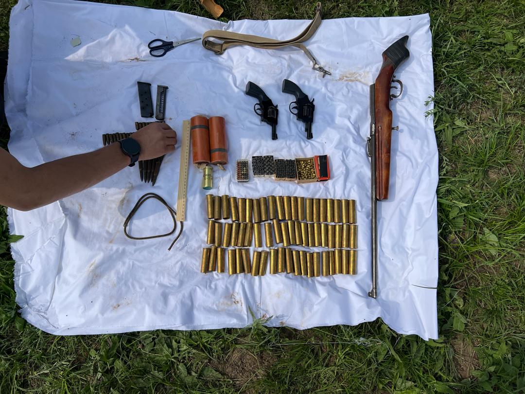 В настоящее время устанавливается происхождение изъятого оружия и лиц, организовавших схрон.